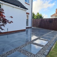 Mike and his team did a fabulous job prepping for, and laying, our top patio. He has an intuitive understanding of what we wanted and offered up his own valuable suggestions to make the final result even better. Mike did the work quickly, finishing on time and within £20 of the quote. I was astonished both with the quality of the work and the end result which we are now thoroughly enjoying sitting in. At short notice Mike also subsequently agreed to take on the laying of the lawn which has completed the look of the top part of our garden. We have a larger piece of patio work to do later in the year and I can give no higher praise than to say we will be looking no further than Mike to do the work for us. I would highly recommend him to anybody looking for a craftsman to do this kind of landscaping work. Steve F.